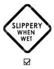21. 이 표시판은, “도로가 젖어 있을 때는 미끄럽다”는 것을 알 려준다.
