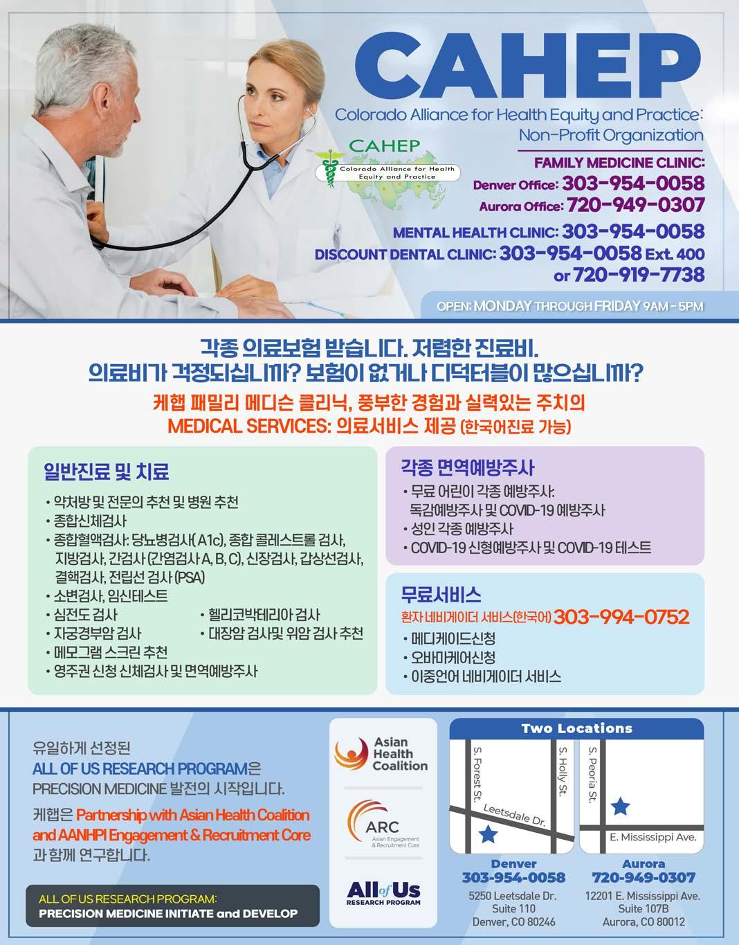 ◈ 주간 포커스 문화센터 Focus Culture Center 11000 E. Yale Ave. #30 Aurora, CO 80014