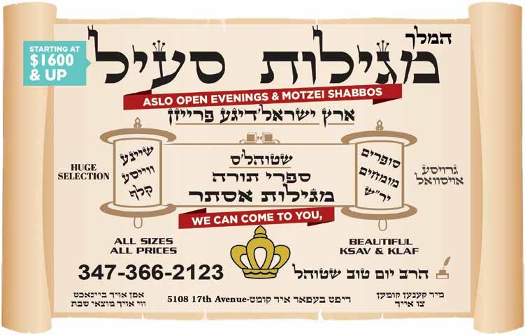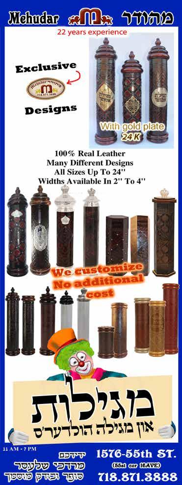 חלשיו םירפס דיב םיצרה BORO PARK 3919 13TH AVE WILLIAMSBURG 500 FLUSHING AVE LAKEWOOD 939 RIVER AVE 718.436.0707 MEFOARJUDAICA.COM CUSTOMIZE YOUR OWN MEGILLAH DESIGN pivotgroup.nyc