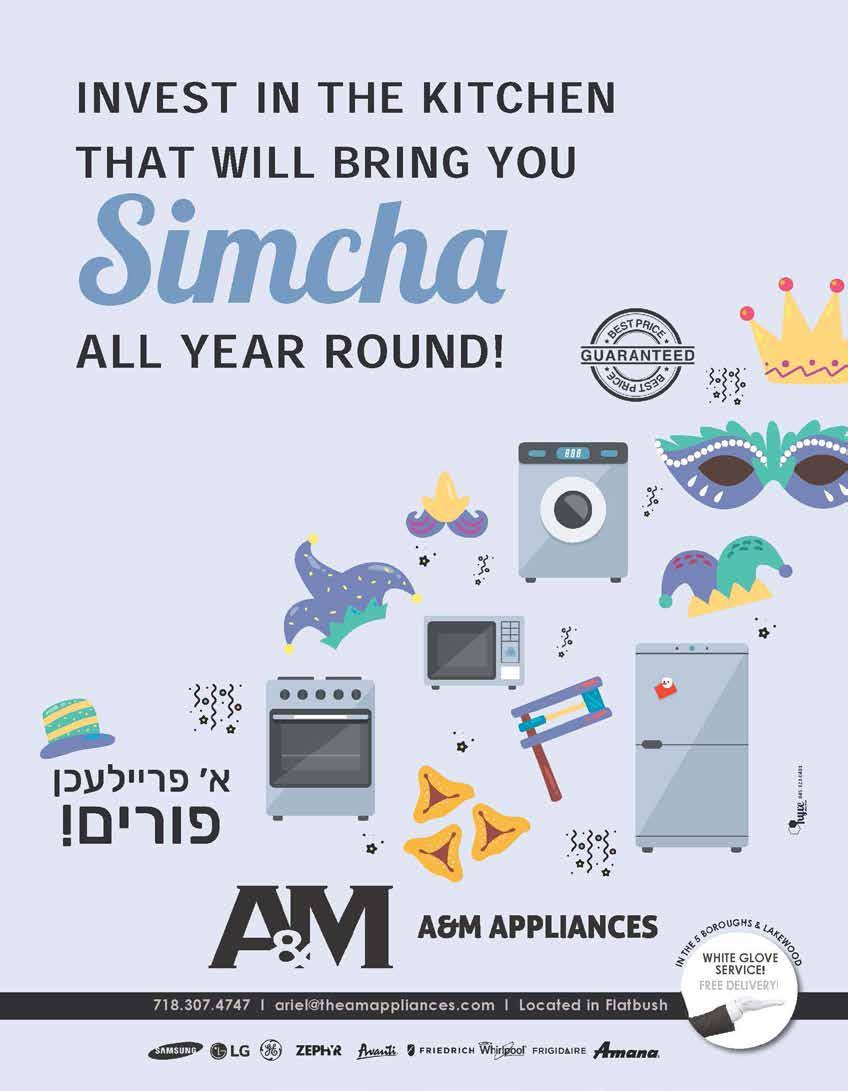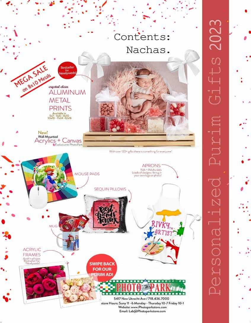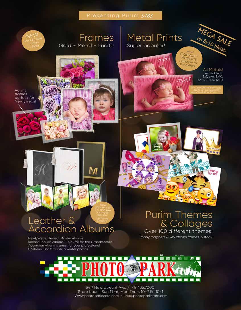 focuscamera.com BROOKLYN Sunday 11:00am - 5:00pm Mon-Th 9:30am - 6:00pm Friday 9:30am - 1:00pm 895 McDonald Ave. Brooklyn, NY 11218 718.431.7900 LAKEWOOD Sunday 11:00am - 7:00pm Mon-Th 10:00am - 7:00pm Friday 10:00am - 1:00pm 1797 Ave of the States, Unit 7 Lakewood, NJ 08701 732.333.6855 DELIVERY • PASSPORT PICTURES • PHOTO PRINTING • DATA RECOVERY • REPAIRS BOTH LOCATIONS · IN-STORE ONLY · RESTRICTIONS APPLY Volume up, prices down. Professional Rechargeable Personal PA System with Bluetooth JBL EONONE-COMPACT Expedition 100W Portable Bluetooth PA System with Wireless Mic SAMSON SAXP106W X-Series MEGA BASS Portable Bluetooth Wireless Speaker SONY XG500 8” Portable Ba eryPowered Loudspeaker MACKIE THUMP GO WONDERBOOM 3 Portable Bluetooth Small Speaker (Active Black) ULTIMATE EARS 984-001807 Don't miss a beat this Purim with our full line of quality speakers. UP TO 30% OFF C H E CK OUT O U R DISCOUN T S ! ONMOST S PEAKERS pivotgroup.nyc