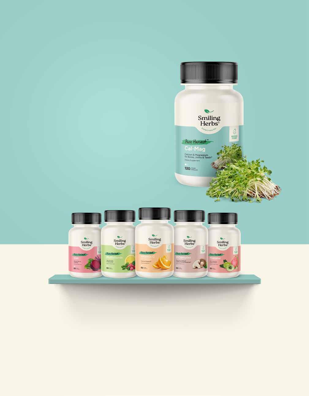 DESIGN CO. AVAILABLE AT YOUR LOCAL HEALTH FOOD STORE & PHARMACY No Fillers Zero Synthetics Vegan GMP Certified Easy to Swallow (845)285-9400 Ext. 101 info@smiling-herbs.com Smiling Herbs Ask our Nutritionist: THESE STATEMENTS HAVE NOT BEEN EVALUATED BY THE FOOD AND DRUG ADMINISTRATION THIS PRODUCT IS NOT INTENDED TO DIAGNOSE, TREAT, CURE OR PREVENT ANY DISEASE. Strength Sourced Naturally A daily dose of wholefood goodness.™ Pure Harvest™ Cal-Mag encapsulates 74 trace minerals with a 2:1 ratio of calcium to magnesium. It is rich in silica and free of limestones, supporting your bones, joints, and teeth. Smiling Herbs® supplements are pure whole-food with zero synthetics. While mainstream wholefood brands use synthetic vitamins fermented with yeast with an herbal blend added to their products, Smiling Herbs Vitamins are made from real food and nothing else. 100% whole food, 100% of the time.