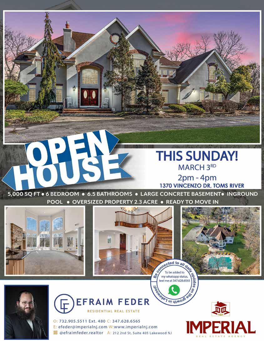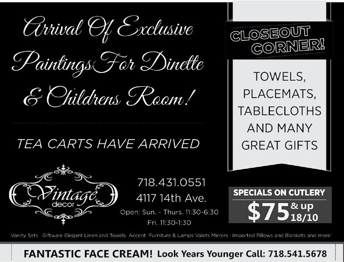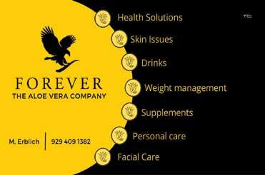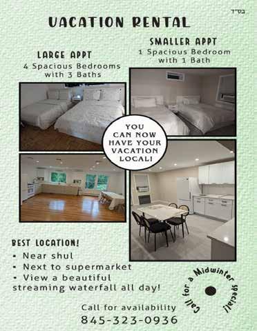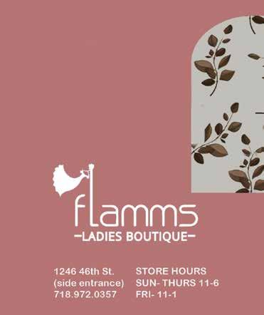 Driving you happy! Ready to go somewhere? 718.600.6666 PRESTIGE FLOORING STEP ON PERFECTION ™ ד"סב IRON WORKS Ironman • Handyman Shomer Shabbos Experienced with all types of metal work big and small SPRING VALLEY 268 W ROUTE 59 845.425.7900 MONROE 386 ROUTE 17M 845.738.3001 LAKEWOOD 202 MAIN STREET BORO PARK 4919 20TH AVE. 347.704.3000 BAY RIDGE 8901 4TH AVE 347.704.3000 WILLIAMSBURG DIRECT BILLING YOUR INSURANCE ONE WAY RENTAL AVAILABLE FREE PICK UP SERVICE 347.878.7445 OPEN LATE HOURS / CALL OR TEXT: 718.400.9988 Discover a licensed family clinic designed to support you and your family on your journey to a brighter future. Fully covered by insurance Here for you. Here for the community. L U X U R Y S U I T E S Call: 718.686.2222 I n f o @ 1 2 3 2 s u i t e s c o m FULLY FURNISHED LUXURY SUITES L O C A T E D I N T H E H E A R T O F B O R O P A R K ! Luxurious suites with full amenities, including kitchenettes and comfortable sofas, to cater to individuals, couples, and families of all sizes