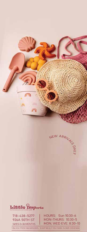 Styled for Mommy. Priced for Daddy. BORO PARK 3813 13TH AVE 347•663•7999 SUN-TH 10:30-6:30 FRI 10:30-1 MONSEY 401 W RT. 59 • AT THE ATRIUM PLAZA 845•459•6112 SUN-TH 10:30-6:30 • FRI 10:30-1 LAKEWOOD AMAZING SAVING SHOPPING PLAZA 732•250•4140 SUN-TH 10:30-6 • FRI 10-1 SS 24