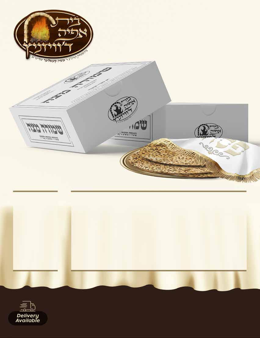 BORO PARK 3919 13TH AVE. WILLIAMSBURG 229 WALLABOUT ST. LAKEWOOD 939 RIVER AVE. MEFOARJUDAICA.COM 718.436.0707 WEDNESDAY LATE HOURS - 9PM LARGE SELECTION OF STYLES AVAILABLE SIZES IN STOCK 7" | 11" | 13" | 16" pivotgroup.nyc