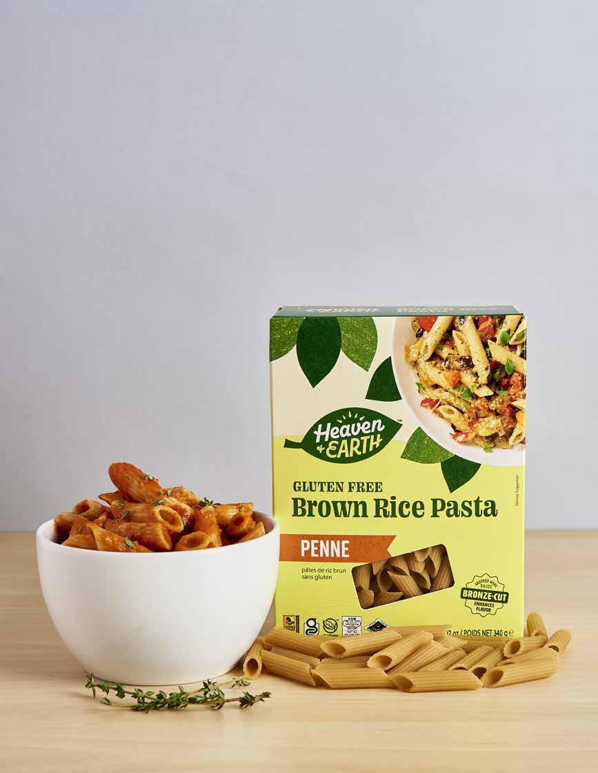 No-mushy-no-gooey-flavorful-alt-flour pastas are here! Cook with Heaven & Earth’s surprisingly firm brown rice pastas, crafted by Italian artisans. Shaped with bronze-cut molds and slow dried at low temperatures, they hold their texture beautifully and absorb sauce nicely. Ready al dente in just 9-12 minutes!