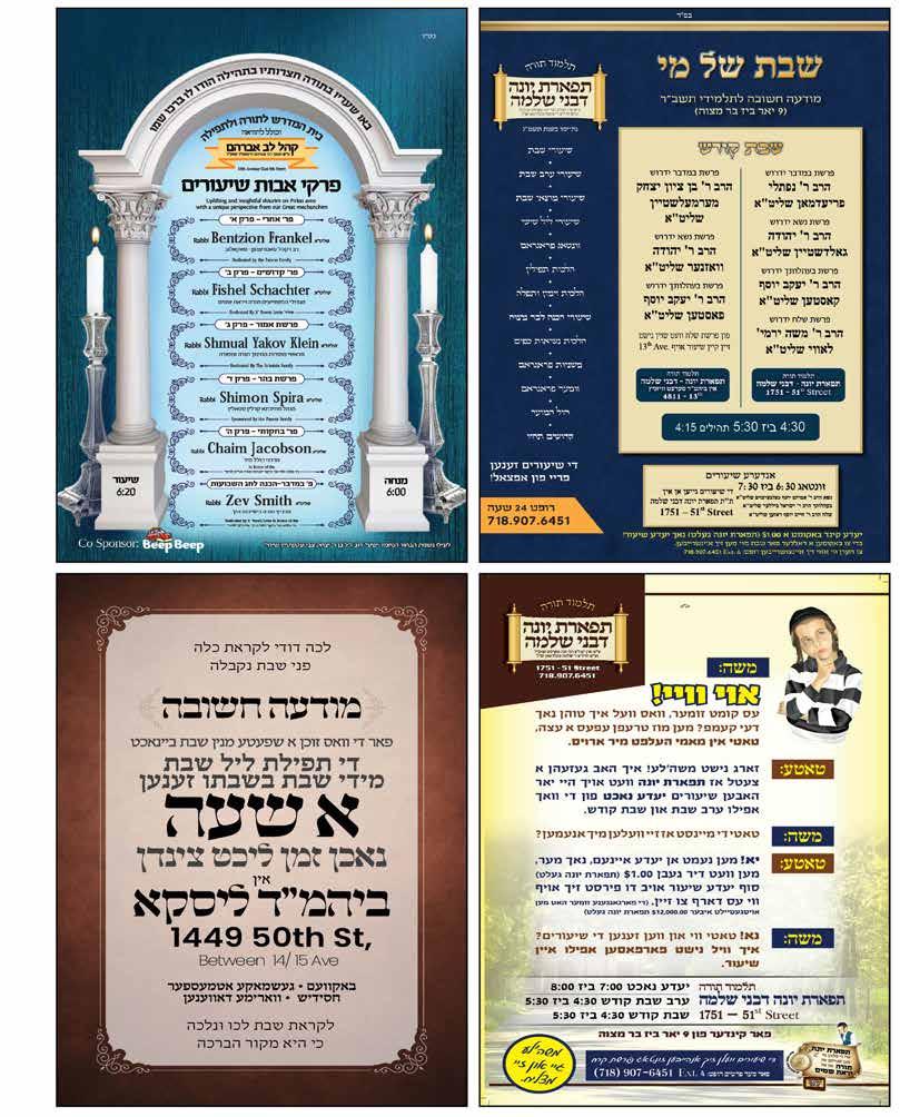 White challah covers, bechers, zmiros, chumashim/siddurim. 718-633-6348