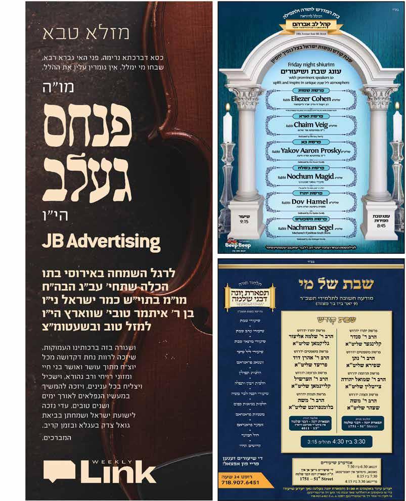 Rabbi Goldstein Rav of Onod: 718-384-5812 or 917-747-0964