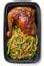 2. On a baking pan, combine all prepared vegetables with a bit of oil, salt and pepper to taste. Bake for 8 minutes. Broil an additional 5 minutes.