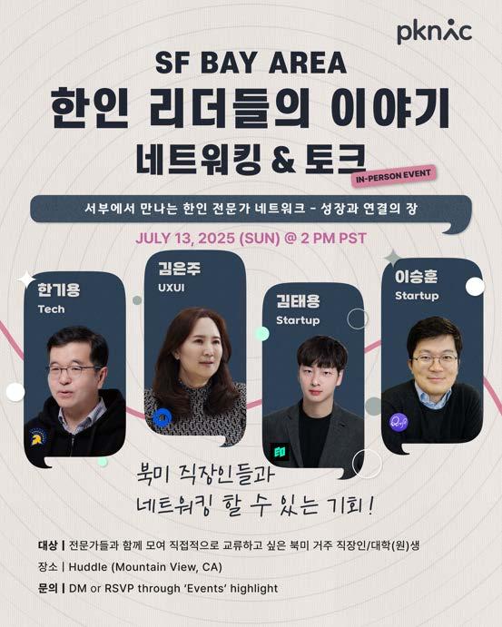 일시: 2025년 8월 30일(토), 오전 10시 30분 ~ 11시 30분 (*행사 종료 후 도시락이 제공됩니다.) 장소: 베스컴 커뮤니티 센터 (1000 S. Bascom Ave, San Jose, CA 95128) 참가 자격: 2025년 8월 30일 기준 한미봉사회 정회원