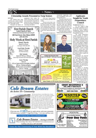 applicants Sought for Youth Preparedness Council WaSHINGTON, d.C. – U.S. Sen. Angus S. King Jr. (I-Maine) announced recently that the Federal Emergency Management Agency (FEMA) is seeking applicants for its Youth Preparedness Council. The Youth Preparedness Council provides an opportunity for young leaders to serve as a member of a national council, to complete a youth preparedness project of their choosing, to learn about youth disaster preparedness from leadership at FEMA and other national organizations, and to participate in the Youth Preparedness Council Summit where the council meets with emergency management leadership to discuss steps to strengthen the nation’s resiliency against all types of disasters. Participants are expected to represent the youth perspective on emergency preparedness and relay information within their communities. Each council member is expected to develop and complete one preparednessrelated project specific to his/her region and interests. In addition to attending the Summit in the summer of 2013, council members will potentially participate in national, regional, state, tribal and local preparedness meetings and present their work. It is expected that members will meet with FEMA on a regular basis via conference call to provide ongoing input on