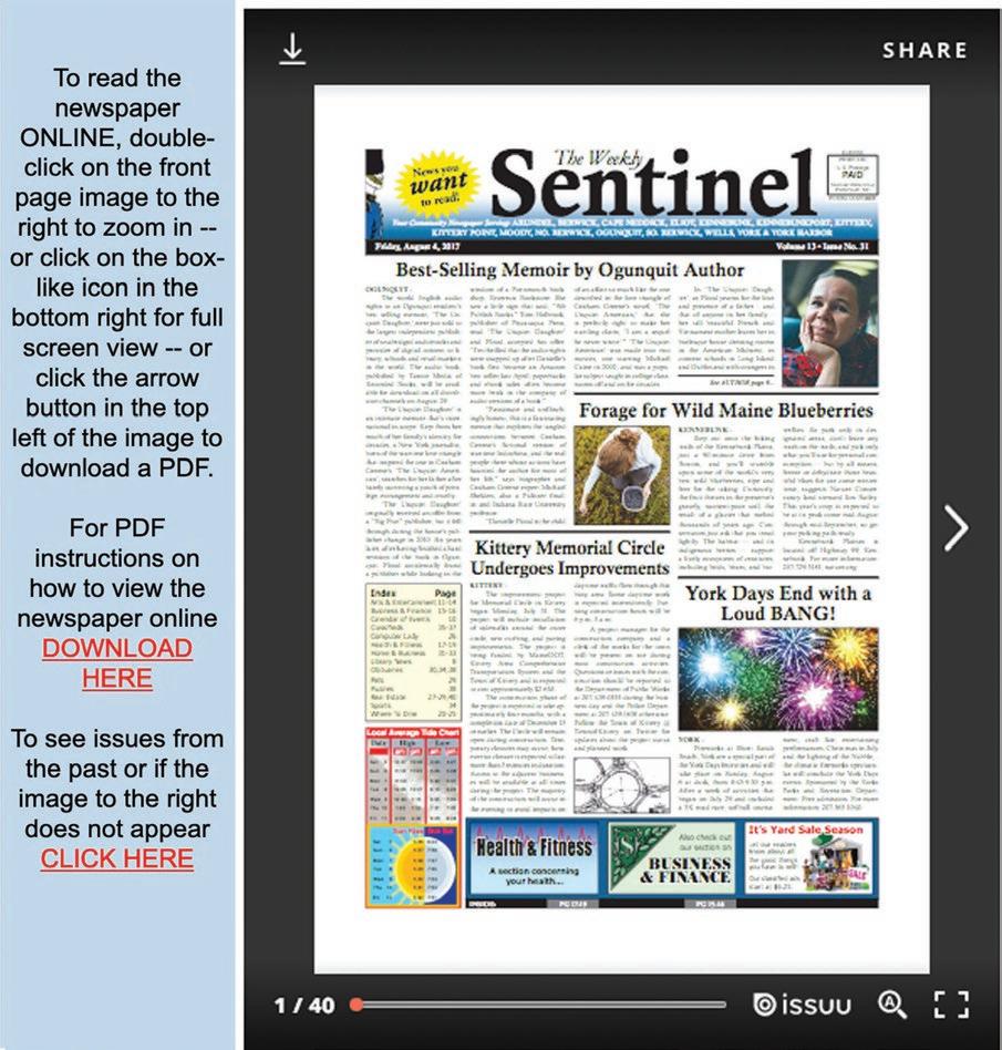 Please contact us at the Weekly Sentinel 207-646-8448 editor@theweeklysentinel.com