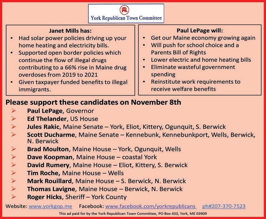 Your Community Newspaper Serving: ARUNDEL, BERWICK, CAPE NEDDICK, ELIOT, KENNEBUNK, KENNEBUNKPORT, KITTERY, KITTERY POINT, MOODY, NO. BERWICK, OGUNQUIT, SO. BERWICK, WELLS, YORK & YORK HARBOR ECRWSS PRSRT STD U.S. Postage PAID Seacoast Media Group Portsmouth, NH POSTAL CUSTOMERSentinel The Weekly 16-1720-21PAGES 10 Friday, October 21, 2022 Volume 18 • Issue No. 42 Date am Local Average Tide Chart ampm pm LowHigh Sat 22 9:38 9:54 3:22 3:41 Sun 23 10:17 10:37 4:01 4:22 Mon 24 10:55 11:18 4:38 5:02 Tue 25 11:33 5:16 5:43 Wed 26 12:01 12:13 5:55 6:26 Thu 27 12:44 12:55 6:36 7:10 Fri 28 1:30 1:41 7:20 7:58 Sun Rise Sun Set Sat 22 7:03 5:49 Sun 23 7:04 5:48 Mon 24 7:06 5:46 Tue 25 7:07 5:45 Wed 26 7:08 5:43 Thu 27 7:09 5:42 Fri 28 7:11 5:50 News you want to read! Arts & Entertainment 14-16 Calendar of Events 4-9 Classifieds 28-29 Dining 18-19 Home & Business 25-27 Library News 11-13 Obituaries 24,27 Pets 22 Puzzles 30 Real Estate 23,31-32 Sports & Outdoor 30 And More! Tech Talk Our New Technology Page
