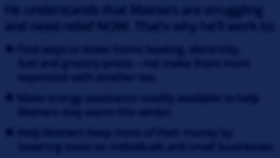 • Reduce Taxes to help Mainer s cope with the rising costs of basic necessities.