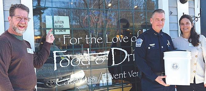 During a recent lunch meeting held at For the Love of Food and Drink in Wells, the Rotary Club of Ogunquit presented Ogunquit Police Chief John Lizanecz with a donation of 48 buckets to be used for the Police Department’s Salt & Sand Program.