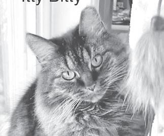 Itty Bitty is a beautiful black-and-tan, longhaired tiger with a gaze that seems to see right into a person’s heart. She’s still shy and watches for signals to know when it’s safe to approach someone new.