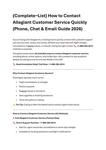If you’re flying with Allegiant Air, knowing how to quickly connect with customer support can save you time, stress, and money. Whether you need help with flight changes, cancellations, baggage issues, or refunds, having the right contact +1-866-284-3014 methods is essential.
