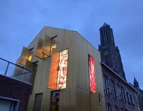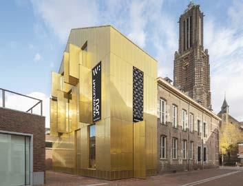 Ook ontwerper Maurice Mentjens, die de nieuwe ingang en inrich ting van Museum W bedacht, is verguld met het videokunstwerk: “Het past perfect bij mijn ontwerp. De gevel verwijst namelijk naar reliekschrijnen waarin vroeger de overblijfselen van heiligen be waard werden. Die werden altijd versierd met sculpturen of schil deringen die het verhaal vertel den van de heilige. Zo verwijst de gouden museumgevel met de vitrines en videoschermen ook naar de binnenkant, naar de museumcollectie. De vele luiken van de gevel kun je bovendien zien als vakjes uit een adventskalen der, met telkens weer een andere verrassing.”