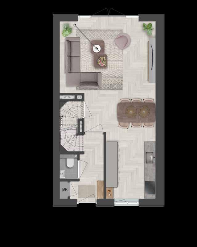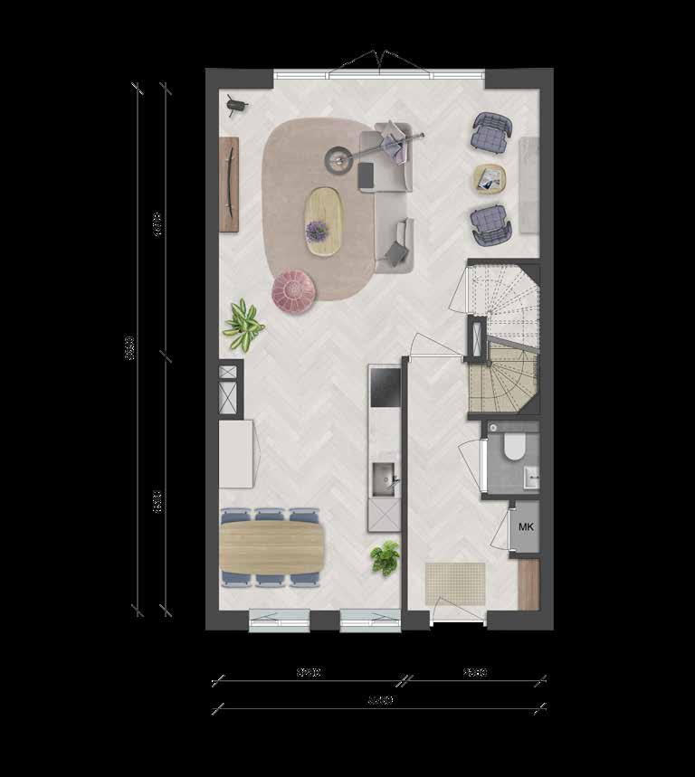 De plattegrond is een sfeerplattegrond om je een beeld te geven van de mogelijkheden. Voor de basisplattegrond en meer contractdocumenten verwijzen we je naar nieuwbouwweespersluis.nl/contractdocumenten 25