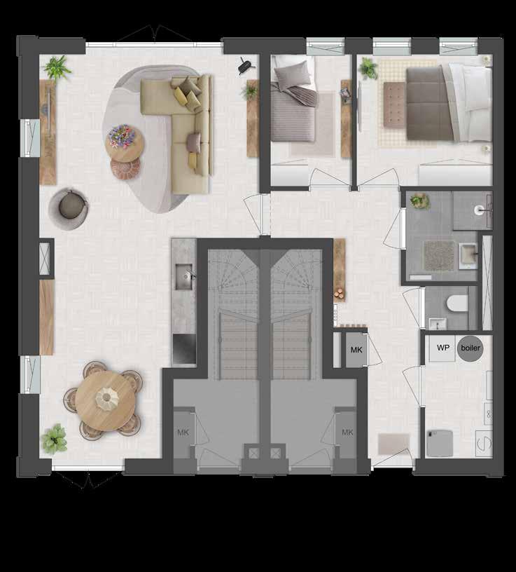 De plattegrond is een sfeerplattegrond om je een beeld te geven van de mogelijkheden. Voor de basisplattegrond en meer contractdocumenten verwijzen we je naar nieuwbouwweespersluis.nl/contractdocumenten 39