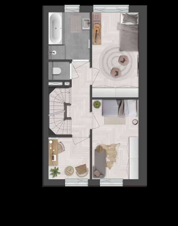 De plattegrond is een sfeerplattegrond om je een beeld te geven van de mogelijkheden. Voor de basisplattegrond en meer contractdocumenten verwijzen we je naar nieuwbouwweespersluis.nl/contractdocumenten 43
