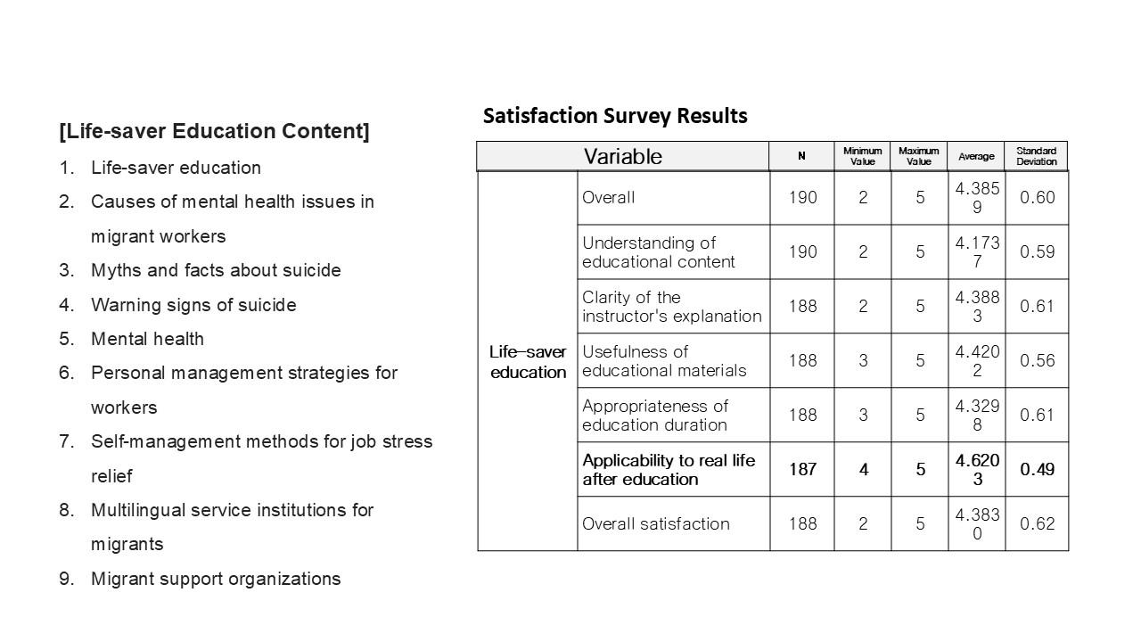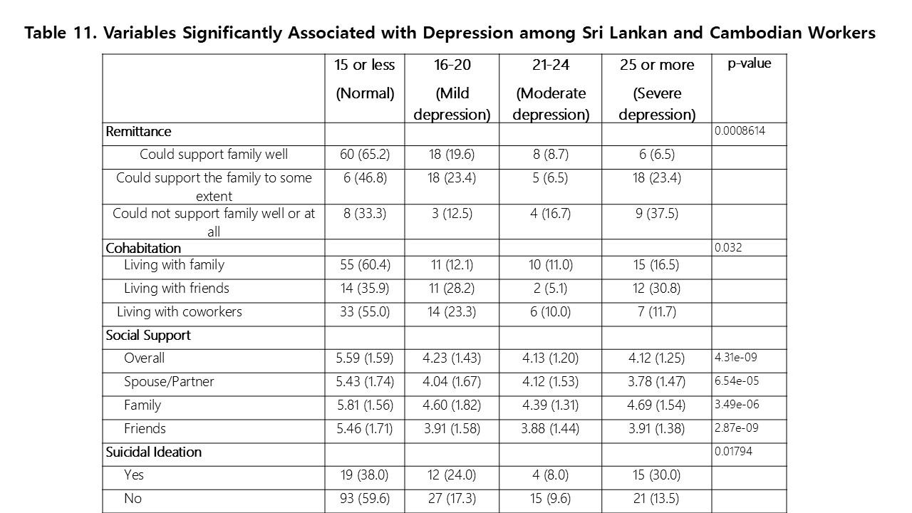 Migrant Worker’s Mental Health Survey Outcome and Migrant Support Organization’s Suicide Prevention Projects