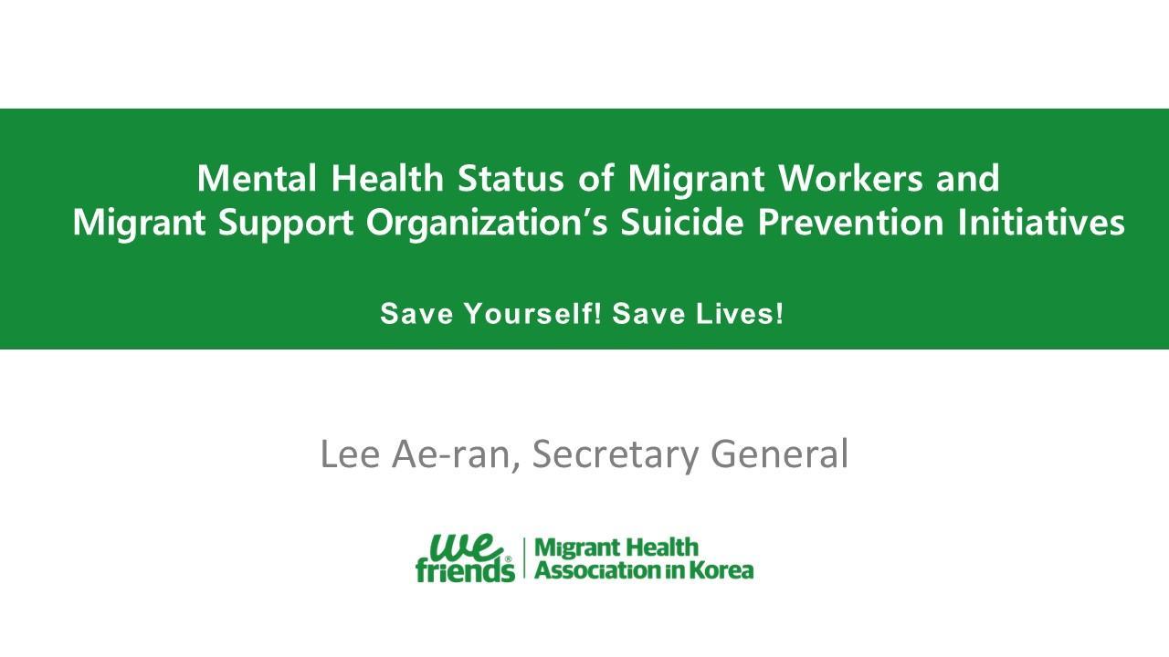 - Aeran Lee,Secretary General (Migrant Health Association in Korea WeFriends)