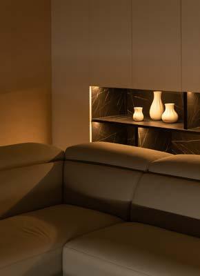 以彈性為配置概念,取消隔間區隔起居室與更衣室,將 空間最大化,而電視牆沒有固定的坐向框架,搭配活動 的TOGO沙發。