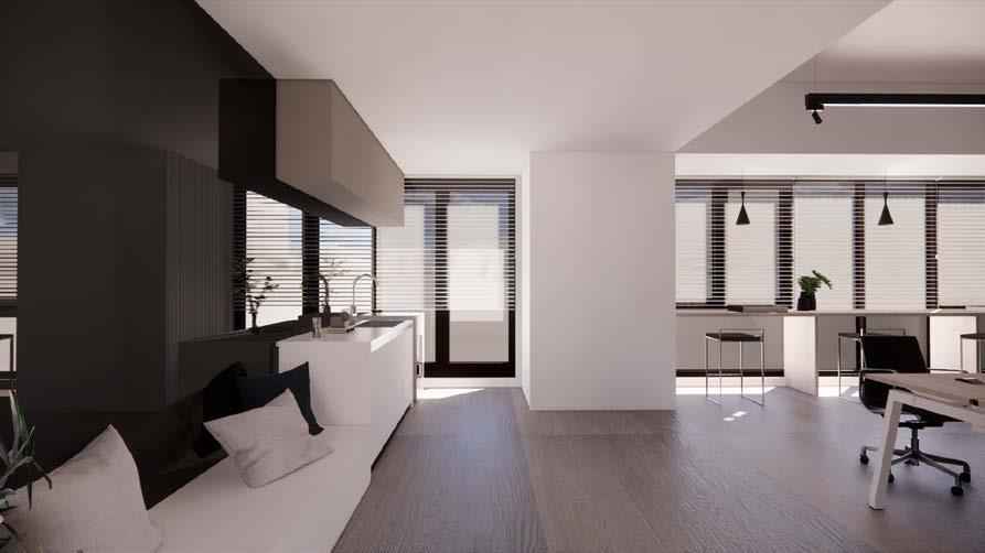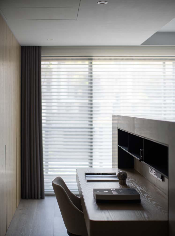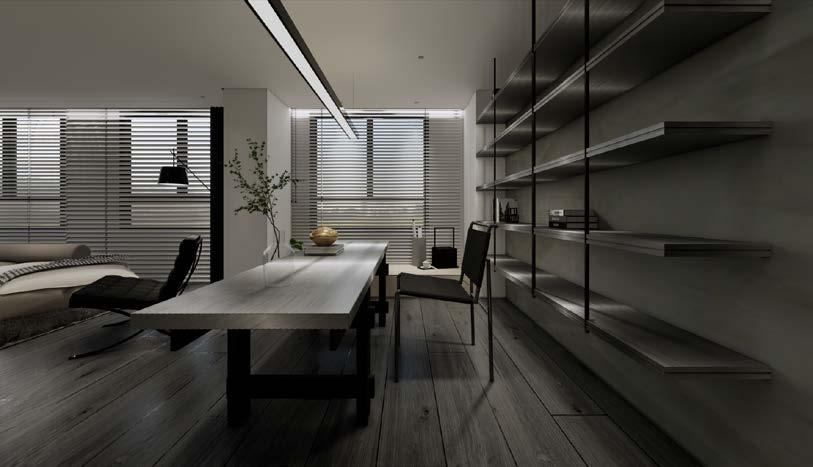 此案基本條件非常好,兩面採光,在預算上考量讓材料 使用選擇單純統一,較特別的是採用UNI-FI門禁系統, 因此在走線的預留需特別注意。
