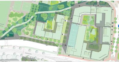 The green canyon is the central object of the design and has a decisive influence on the urban figure. In addition to climatic regulation of the quarter, it offers high quality of stay for public life between historical stock and a modern, productive quarter. The canyon, like the design, provides an answer to current questions about how we can make urban life greener and more productive at the same time, and leads to a new idea of urban working and living in Humboldthain.