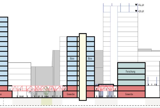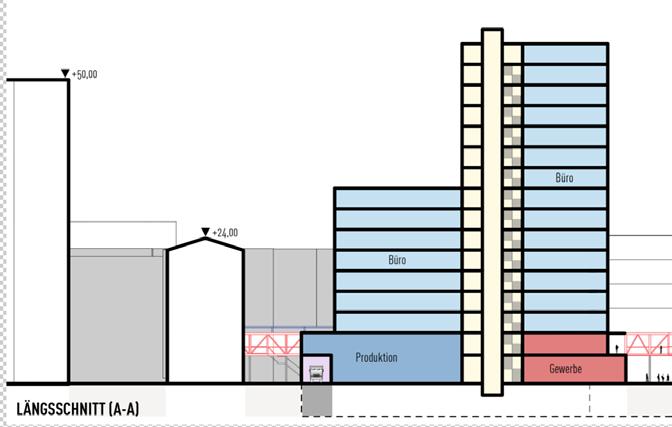 GoWest is a 7-hectare commercial district under development in Berlin’s southwest on the site of the former Reemtsma cigarette factory. Designed as a vibrant urban hub, it will primarily feature retail, services, and gastronomy on the ground floors, with 4-5 upper floors dedicated to office spaces, topped by setback floor, reaching a total height of 24 meters. The district also includes a hotel block and is adjacent to existing research centers to the west.