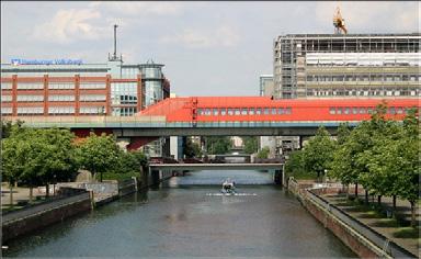 Hamm, the east of Hamburg, Where the city rises, trains fly over, Vividly and dense.
