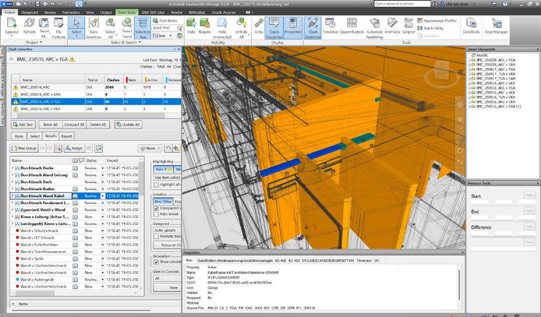 The portfolio also includes large-scale infrastructure projects such as Aeroengine MRO facilities (Lufthansa + Rolls Royce) and metro depots (BVG), integrating Building Information Modeling (BIM) in accordance with international standards (ISO 19650). These projects demonstrate proficiency in BIM and technical software for clash detection, information management, and visualization—using tools like Revit, Navisworks, Solibri, and BIMcollab. The work also reflects practical experience in Common Data Environment (CDE) optimization and BIM-based collaboration workflows.