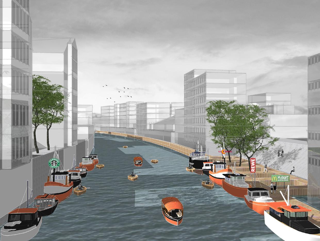 The Symphony of River is a design concept that takes its site at the Nordcanal of Bille River in Hamburg. The project aims to explore how the Bille inner-city water spaces undergoing transformation can be further developed and programmed dynamically to invite a broader public and allow for active participation as well as passive withdrawal from everyday city life. The challenge is to create an architecture that seamlessly integrates with the context and history of the place and generates strong poetic images.