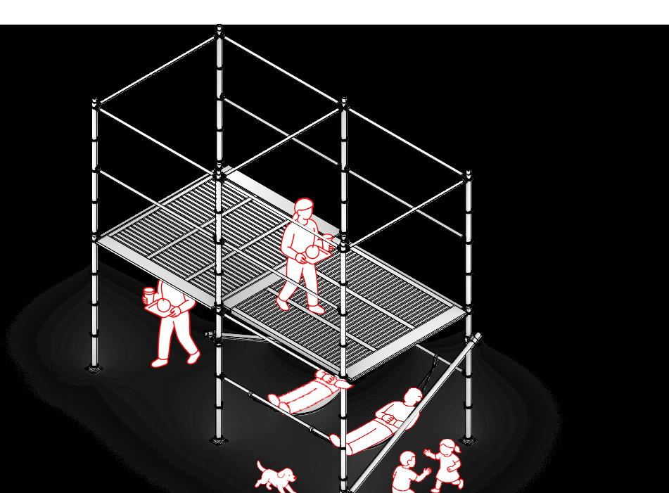 The scaffold as civic infrastructure — adaptable, ephemeral, performative.