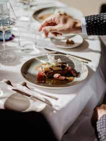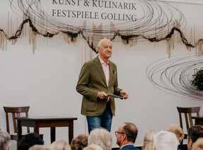 war, also auch weiterhin seine Leidenschaft. So viel steht fest. Er wird sich auch in Zukunft mit Bordeaux, einer seiner Lieblingsregionen, beschäftigen und dazu beitragen, dass das Gute zu den Menschen kommt. Hermann will immer noch Spuren hinterlassen, als Hotelier, als Weinhändler und vor allem als Mensch. Die von ihm gemeinsam mit Salzburger Festspielkünstlern gegründeten Kunst & Kulinarik Festspiele zeugen davon. Sie sind zur Institution geworden und feiern heuer ihr 25-Jahr-Jubiläum. Der Kontakt zu den Künstlern entstand in den 90er-Jahren, als viele von ihnen zur Salzburger Festspielzeit in Golling beim Döllerer dinierten. Da saßen die Wiener Philharmoniker neben Schauspielern, philosophierten über lateinamerikanische Musik, aßen und tranken Wein. Eine Umgebung, die kreativ machte und die am Ende dazu führte, dass Golling seine eigenen Festspiele bekam. Anfangs waren es kleine Darbietungen gegen Kost und Logis, heute sind die Plätze begehrt und die Veranstaltungen bereits Monate im Voraus ausgebucht. Kunst und Kulinarik als Gesamterlebnis. Die beiden Welten des Hermann Döllerer haben sich auf der Gollinger Burg auf eindrucksvolle Weise zusammengefügt. Viele Künstler sind zu Freunden geworden und kommen immer wieder gerne nach Golling.