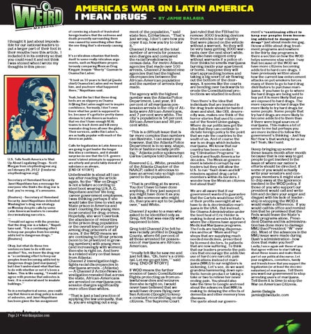 America�s War on Latin America I Mean Drugs) - By Jamie Balagia I thought it just about imposIsible for our national leaders to put a larger part of their foot in their mouths I see this article. I included it in its entirety so that you could read it and not think I was stoned when I wrote my thoughts in this piece: