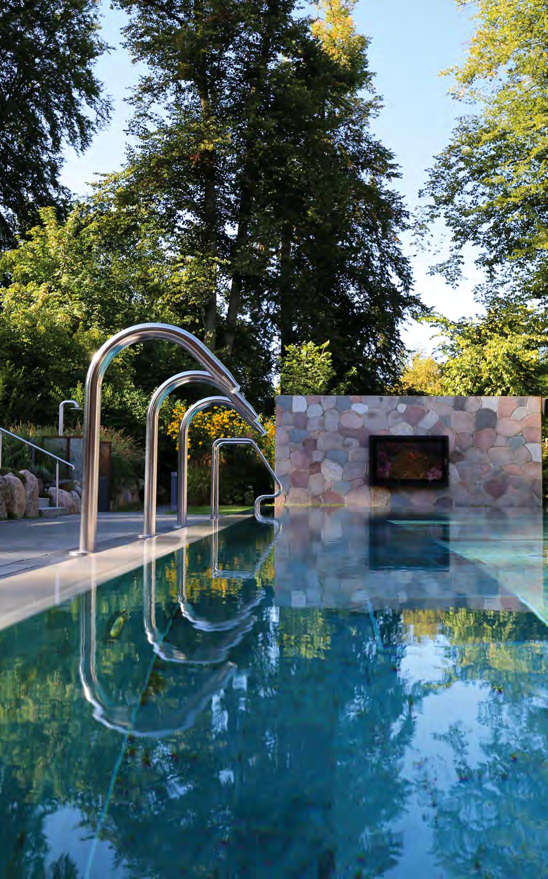 combination with spruce resin. In addition, wind and weather, interrupted only by birdsong. The glimpses of curious deer and herons at the castle pond complete the holistic wellbeing. Our goal: to complement your SPA experience and make you even more aware of the benefits of nature, which ist why we present our magnificent on the plateau above our pool area.