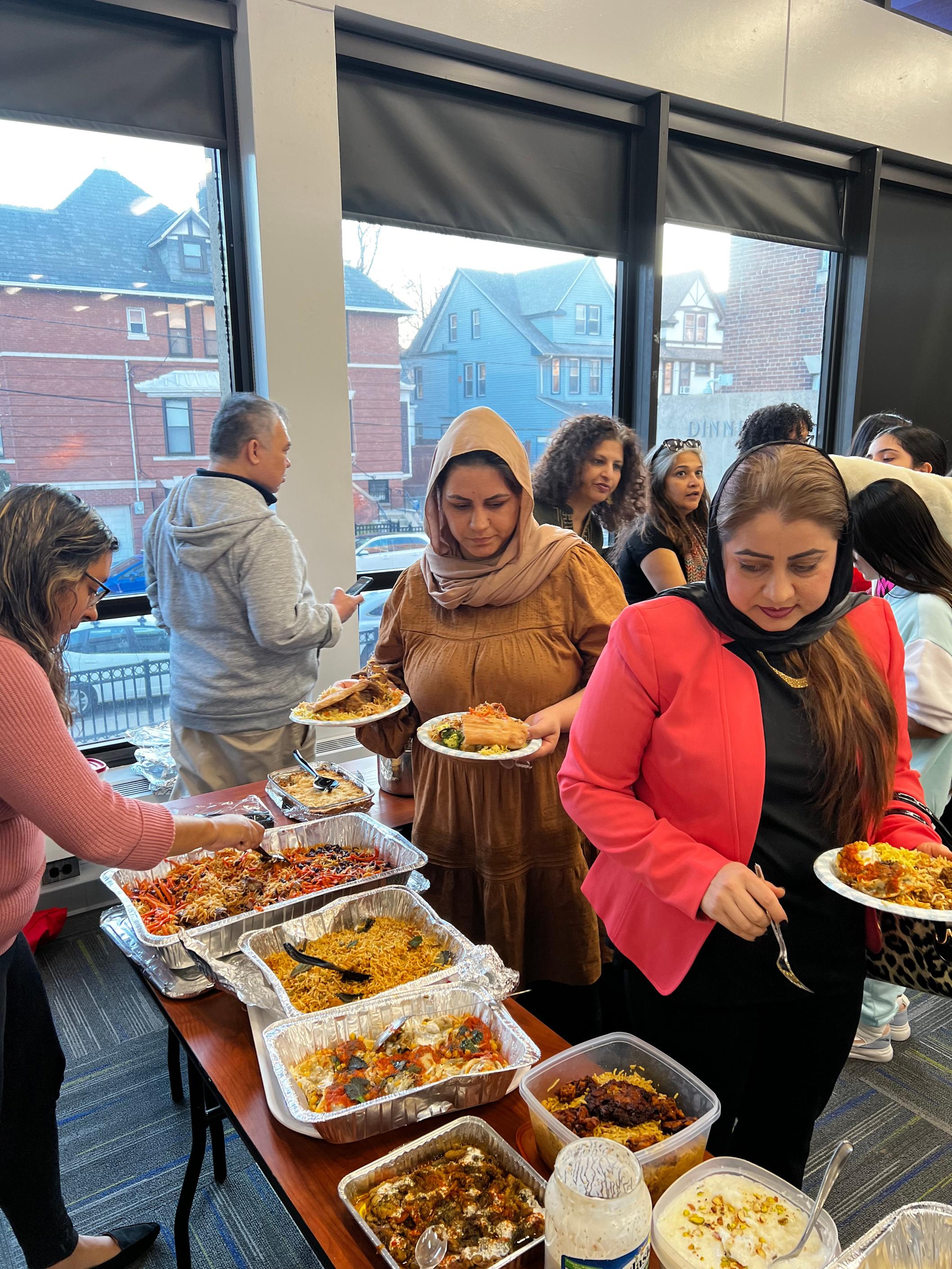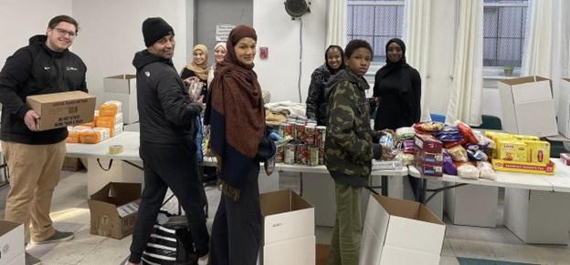 On March 18, we partnered with the Islamic Circle of North America to deliver Ramadan food boxes to 75 families. Each box contained essentials like flour, oil, sugar, pasta, dried beans, rice and a halal meat voucher. Volunteers helped sort food and pack up boxes in the morning and others delivered them in the afternoon. On December 9 we were able to deliver bags filled with nonperishables, sweet potatoes, and a halal meat voucher to every family.