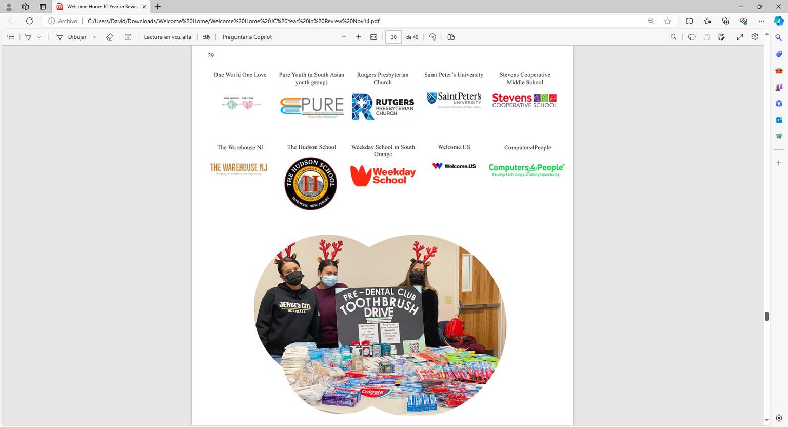 In the year 2023 many new refugees resettled in Jersey City, and those who had arrived before continued their progress towards achieving selfreliance and becoming integrated into the community. Welcome Home was there to help, as it has been since 2016. Our staff and volunteers worked tirelessly to help our friends obtain benefits to which they were entitled; help them learn English, find jobs, get necessary training and develop life skills; and access and resolve problems with housing, health care and schooling.