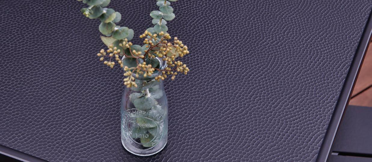 To keep furniture looking new, use Soft Scrub or similar non-abrasive products to remove scuff marks and scratches. Use lemon oil for protection and natural soap and water for cleaning. Powder coating is one of the most durable protective coatings available for metal surfaces, but proper care will help prolong the finish. Over time, powder coated finishes exposed to the elements may show signs of weathering such as reduced gloss and slight color loss. A consistent schedule of cleaning the surface will help remove dirt, grime and other surface buildup that may be harmful to the powder coating finish. We do not recommend using chemical cleaners such as Acetone, Mineral Spirits or Lacquer thinners. Any type of chemical that is harmful to the powder coat surface should be removed or cleaned immediately.