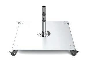 Frankford can recommend specific bases and anchoring systems for specific umbrellas (pg. 46). However, these are only recommended weights as different environments may require different base options. Umbrellas must be secured to a sufficiently weighted umbrella base.