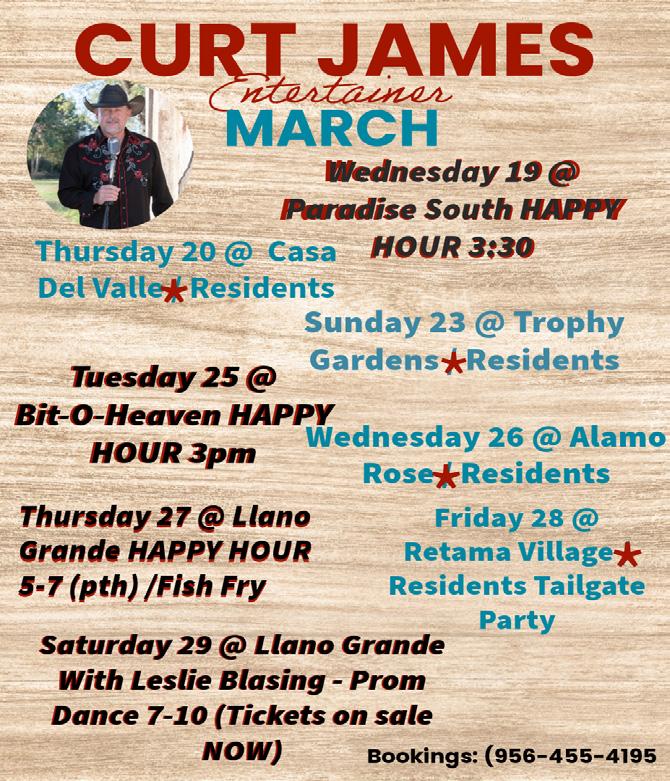 Sunshine’s 77 Corner Store 7:00 AM Country Sunshine RV Resort Harlingen (956) 425-7448 $ Craft Show 8:00 AM Aladdin Villas Mission (956) 581-1288