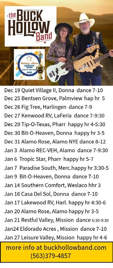 New Year’s Eve w/Route 66 8:00 PM Country Sunshine RV Resort Weslaco (956) 969-1557 $15/$20