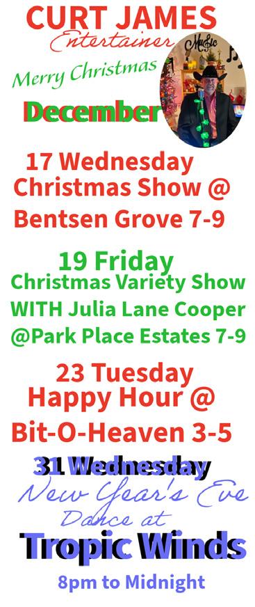 New Year’s Eve w/DJ Roland 9:00 PM Eastgate RV Park Harlingen (956) 423-3137 TBA