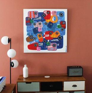 Œuvre originale et unique, signée, vendue avec son certificat d'authenticité, Artiste BBOSS - banc de Poissons 25' (80x80cm) Peinture acrylique et pastel sur toile, 650 € 6 Rue des pinsons, Fontaines-lès-Dijon www.open-art-galerie.com