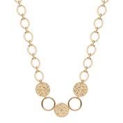 Collier plaqué or à maillons graphiques et chaîne diamantée. Motifs texturés et volumes contrastés pour un look structuré et affirmé. Made in France. Bracelet Mosaica – 95€, Boucles d’oreilles Mosaica – 125€