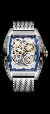 Sophistiquée et mécanique, la montre pour homme MOW1213 révèle toute la beauté de son mouvement automatique squelette à travers un cadran aux nuances argent et bleu. Son boîtier en acier argenté de 53,7 x 45 mm met en lumière trois aiguilles ainsi qu’un mécanisme orné de 24 ''jewels'' et équipé d’un stop seconde, symbole d’un savoir-faire horloger de la marque. Fabriquée non loin de Besançon.