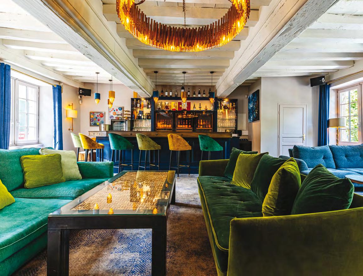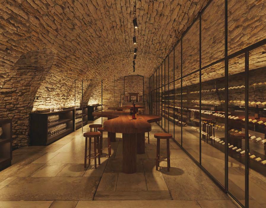 parfaitement entre authenticité et modernité. Des objets soigneusement sélectionnés, alliant pièces chinées et références viticoles, viennent enrichir l'âme des lieux, renforçant ainsi leur caractère unique et intemporel. Les 37 chambres, réparties en plusieurs espaces, allient confort moderne et charme des vieilles pierres, dépouillées de tout ornement superflu, offrant des vues imprenables sur le parc environnant. À l’extérieur, ce dernier est dessiné pour offrir une expérience sensorielle unique, avec des espaces intimes pour se ressourcer ou se retrouver autour de la piscine ou des tables installées dans une cour aux allures de place de village.