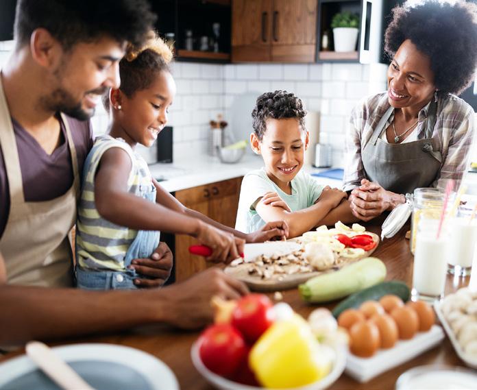 With the right recipe, including the kids in the cooking is a rewarding activity. Tofu Crumble Street Tacos (p. 30) includes tasks for even the littlest hands.