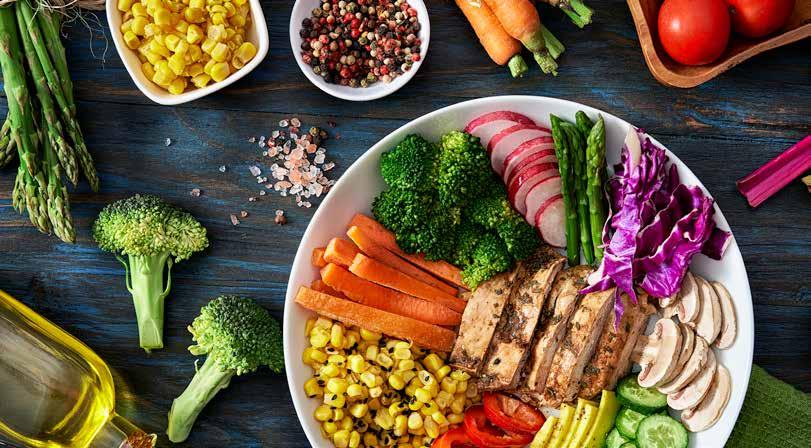 Use the healthy plate graphic (pg. 9) and the list below to guide your meal prep in creating a bowl filled with balanced nutrition and flexible flavors. create a bowlful of goodness.